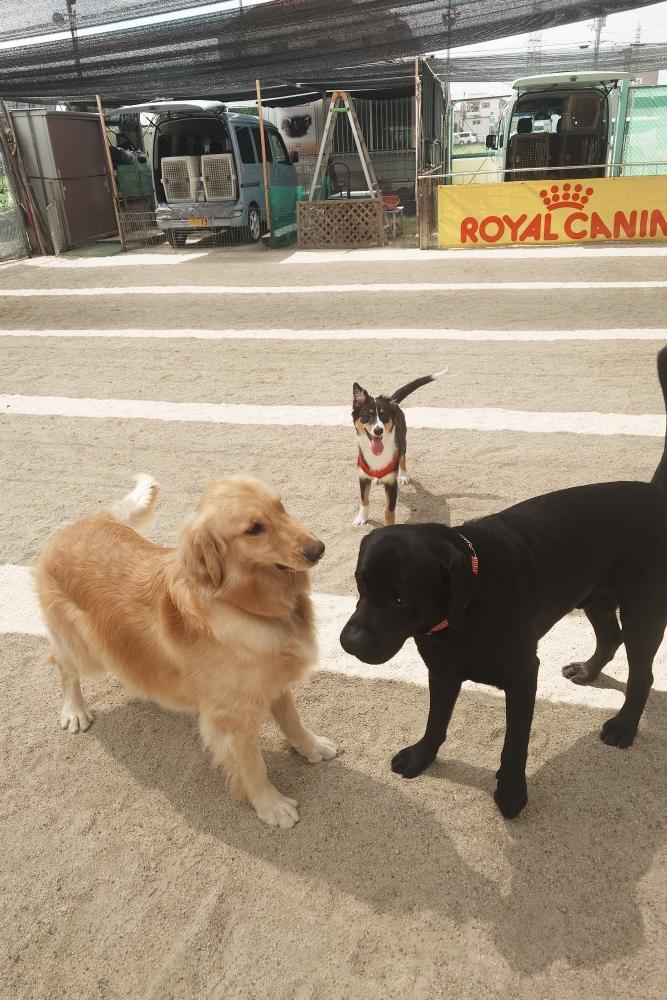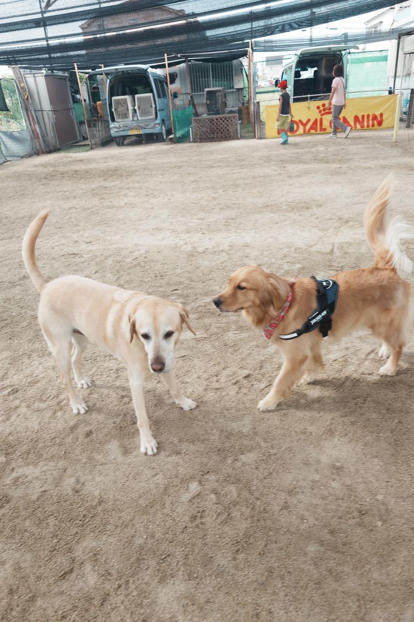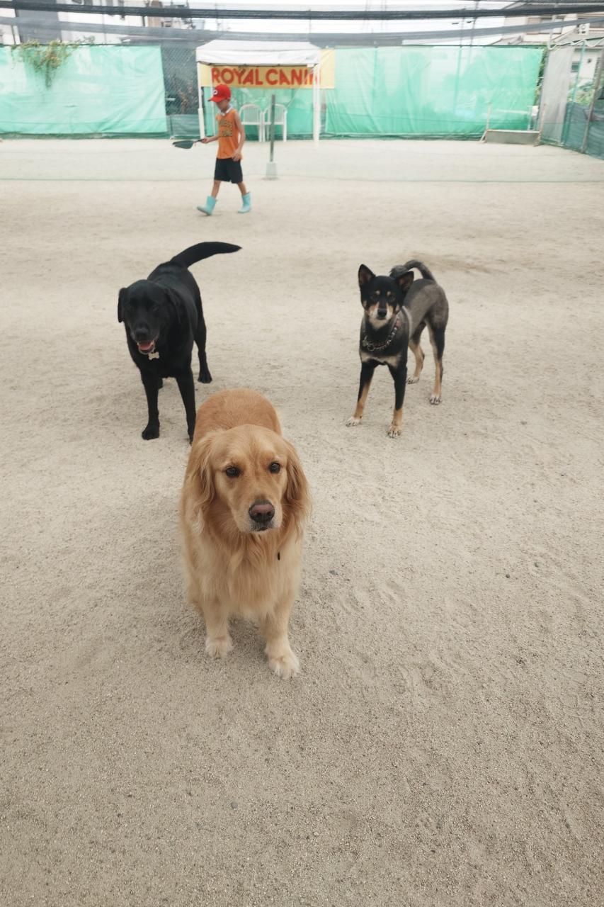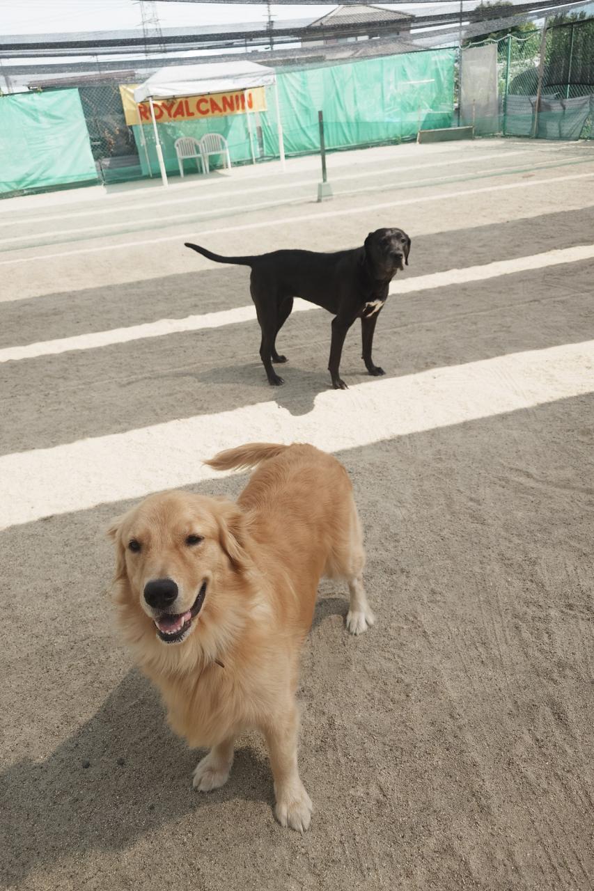 体験スクールで来てくれた柴犬のあんこちゃん!今日からスクールに来てくれたゴールデンとフラットのミックスのララちゃん、暑い中ですが、元気にやりましょう!