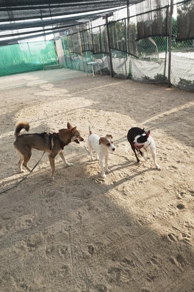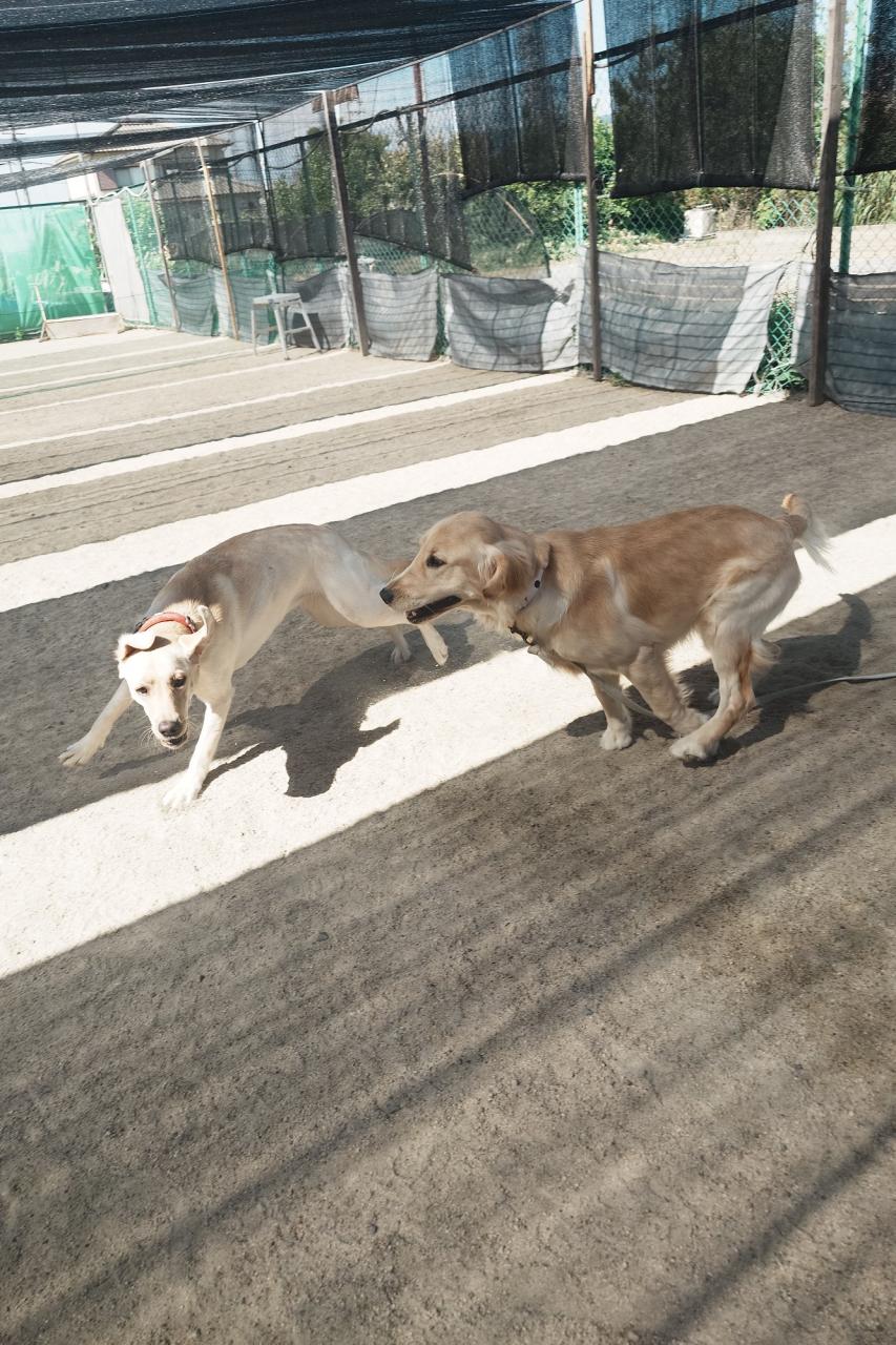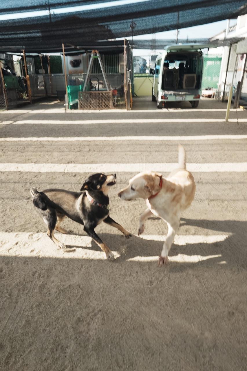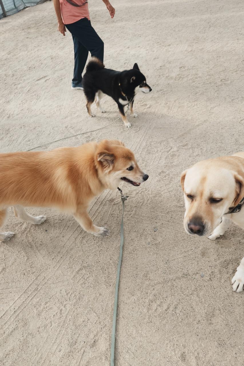 体験スクールで来てくれた柴犬のあんこちゃん!今日からスクールに来てくれたゴールデンとフラットのミックスのララちゃん、暑い中ですが、元気にやりましょう!